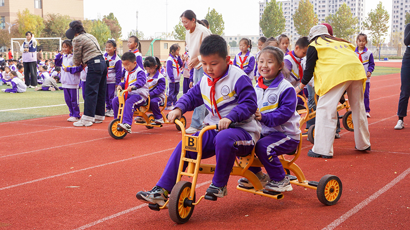 比赛场上,运动员们拼尽全力,果断出击,在此起彼伏的助威声和欢呼声中,赛出了成绩,赛出了友谊,赛出了积极进取的精气神,在“力与美”中传递顽强拼搏的体育精神。“铅球”“跳高”“跳远”“接力比赛”“车轮滚滚”“疯狂独轮车”……一至九年级的学生们在赛场上全力奔跑、跳跃、投掷,展示运动技巧,展现团队合作,以明德的标准和豪迈诠释竞技的含义。“无敌旋风跑”“纤夫的爱”“企鹅夹球跑”……幼儿园和三个学部的老师们,一改往日的严肃和认真,他们摩拳擦掌,全情投入,以个人风采释放出运动活力,展现运动的意义。学生家长也热情参与其中,他们反应迅速,通力合作,以热烈饱满的个人风采投入到比赛当中。