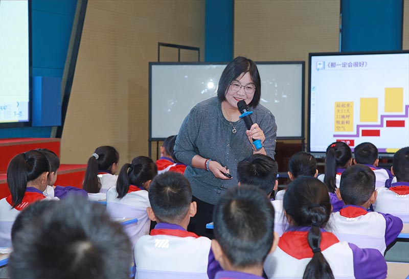 张友全校长向大家进一步介绍寿光现代明德学校“将阅读成为推动学生发展的核心动力”的阅读理念。作为践行学校“为未来培根”核心办学理念的重要途径,全科阅读对学生终生成长和综合能力的提升具有重要意义。未来,学校将创设更为多元的阅读新生态,持续在阅读方法和阅读策略上下功夫,让孩子们在享受阅读中,积累阅读经验,养成阅读习惯,丰富精神世界,为终身发展奠定根基。