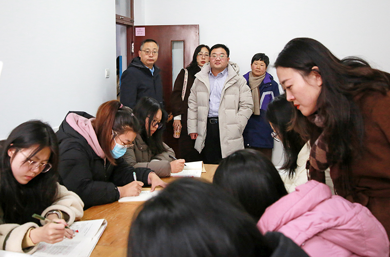 考察团成员深入学校各个年级,跟靠了中小学语文、数学、英语、历史、地理、生物、道法等学科的日常教研和学科课堂,对我校的常规课堂教学和“培根”课程体系等进行初步了解。