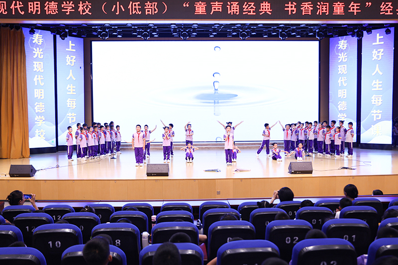 莫道古辞皆陈迹,童声诵字百花鲜。5月20日,寿光现代明德学校开展经典诵读比赛。舞台上的孩子们神采奕奕,激情飞扬,以曼妙舞蹈和嘹亮声音演绎诗词经典,弘扬传统文化。