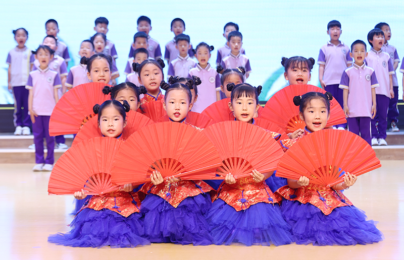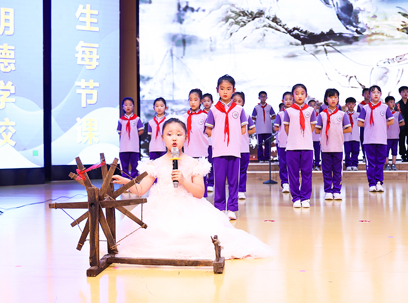 一场诵读,一次洗礼。“珠落玉盘”处,是深情表白,也是与古人对话,举手投足间,孩子们将传统蒙学的哲思进行传递;“花开燕归”时,是春意大写,也是画卷描绘,舞台上的每一帧画面,带着明德孩子的气息,让人欣赏,让人治愈。